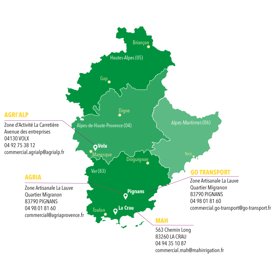 Les entreprises du GROUPE AGRIA PROVENCE mettent tout en œuvre pour proposer l’ensemble des moyens de production nécessaires aux exploitations agricoles.